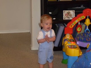 Here’s a shot of Levi with Tyler. This outfit is really cute. Unfortunately, it is also easy to take off. When we picked him up from school he wasn’t wearing it. He kept taking off the overalls.