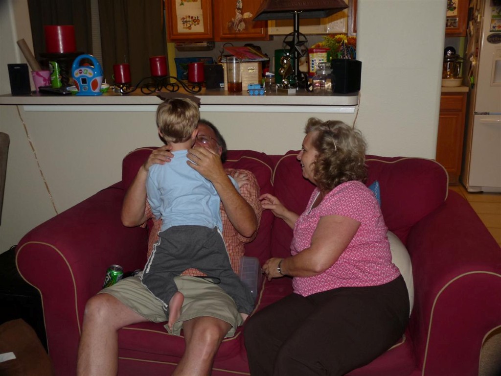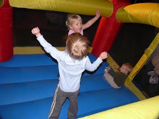 Levi passing some toys in. We actually heard a quote that brings fear into a father. Olivia whispered to Levi as he was trying to climb into the bouncer with her, “Hurry, before my mom sees you”. Wow, trouble.
