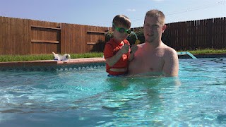 Our neighbor’s had to evict their last tenants, so until this coming Friday we were able to use their pool next door. Even after his swim lessons it took Levi a little while to warm back up to things.